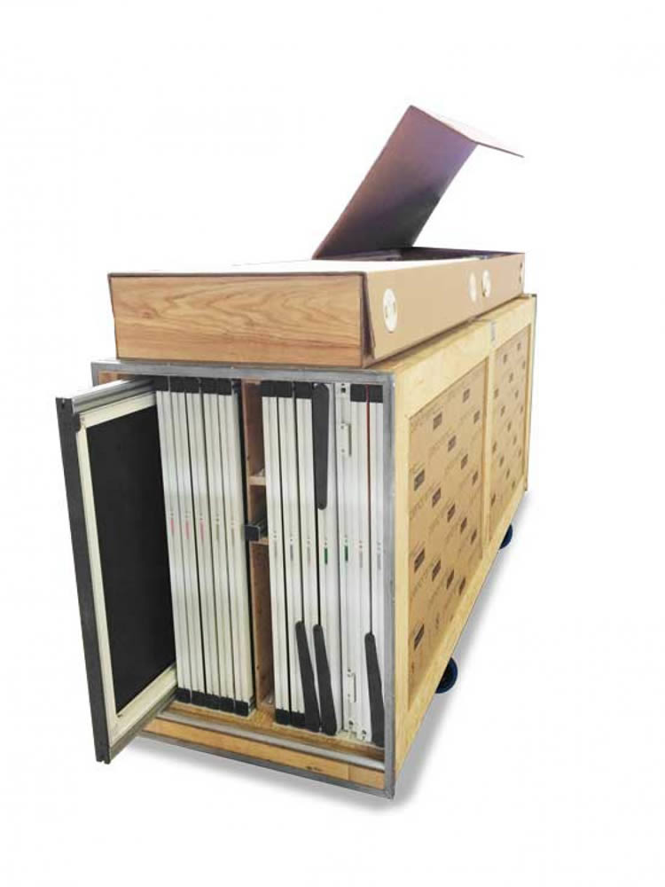 Peut contenir 14 cadres de 96 cm, 1 cadre de 48 cm et 1 cadre de 24 cm. Pour utilitaire avec hayon ou rampe. Comprend une caisse supérieure.